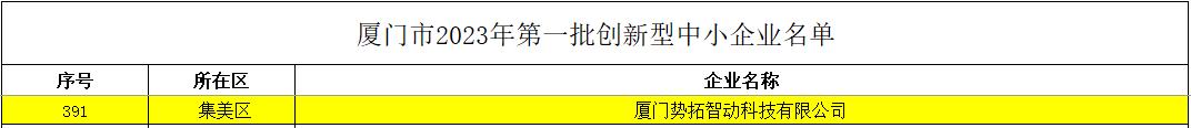勢拓智動入選廈門市第一批創(chuàng)新型中小企業(yè)名單