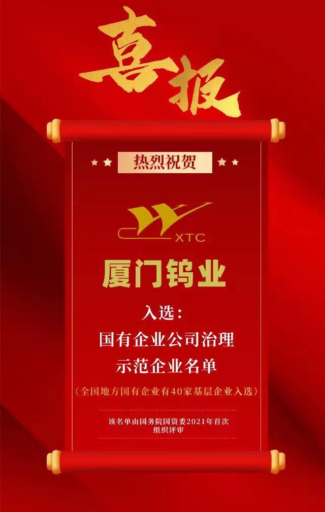 新年新喜訊:廈門鎢業(yè)集團入選國務院國資委評選的《國有企業(yè)公司治理示范企業(yè)名單》。在國務院國資委2021年首次評選中,共確定公司治理示范企業(yè)145家,廈鎢集團位列其中。